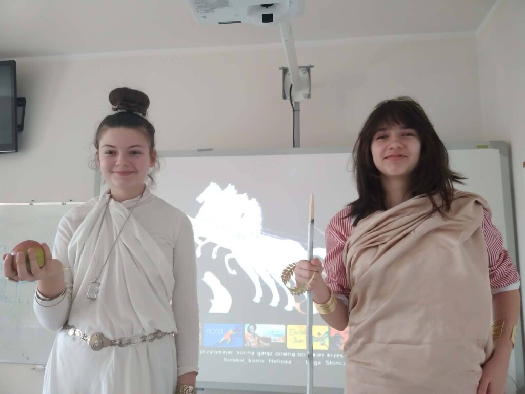 5 marca 2026 roku uczniowie klasy V podczas lekcji języka polskiego przenieśli się w niezwykły świat starożytnej Grecji. Dzięki swojej kreatywności i pomysłowości na chwilę stali się boginiami, bogami oraz dzielnymi herosami.